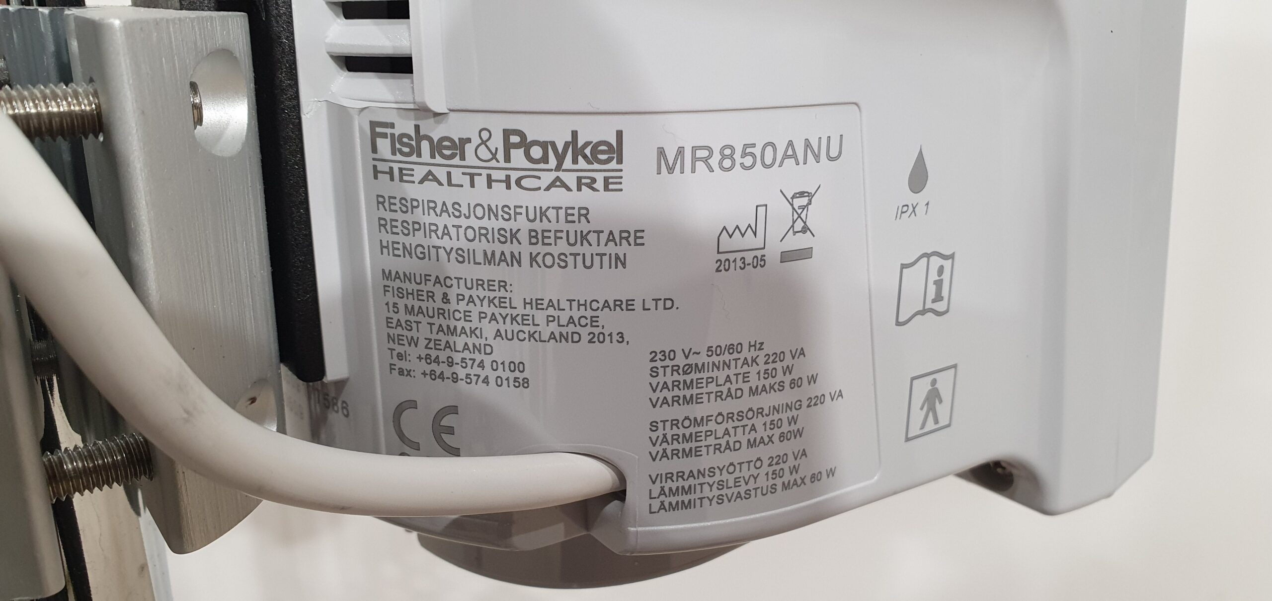 * Fisher & Paykel MR850 hingamisgaasi niisutussüsteem – haiglates laialdaselt kasutatav soojendusega niisutaja, mis on mõeldud invasiivse ja mitteinvasiivse ventilatsiooni ning high-flow hapnikravi jaoks.