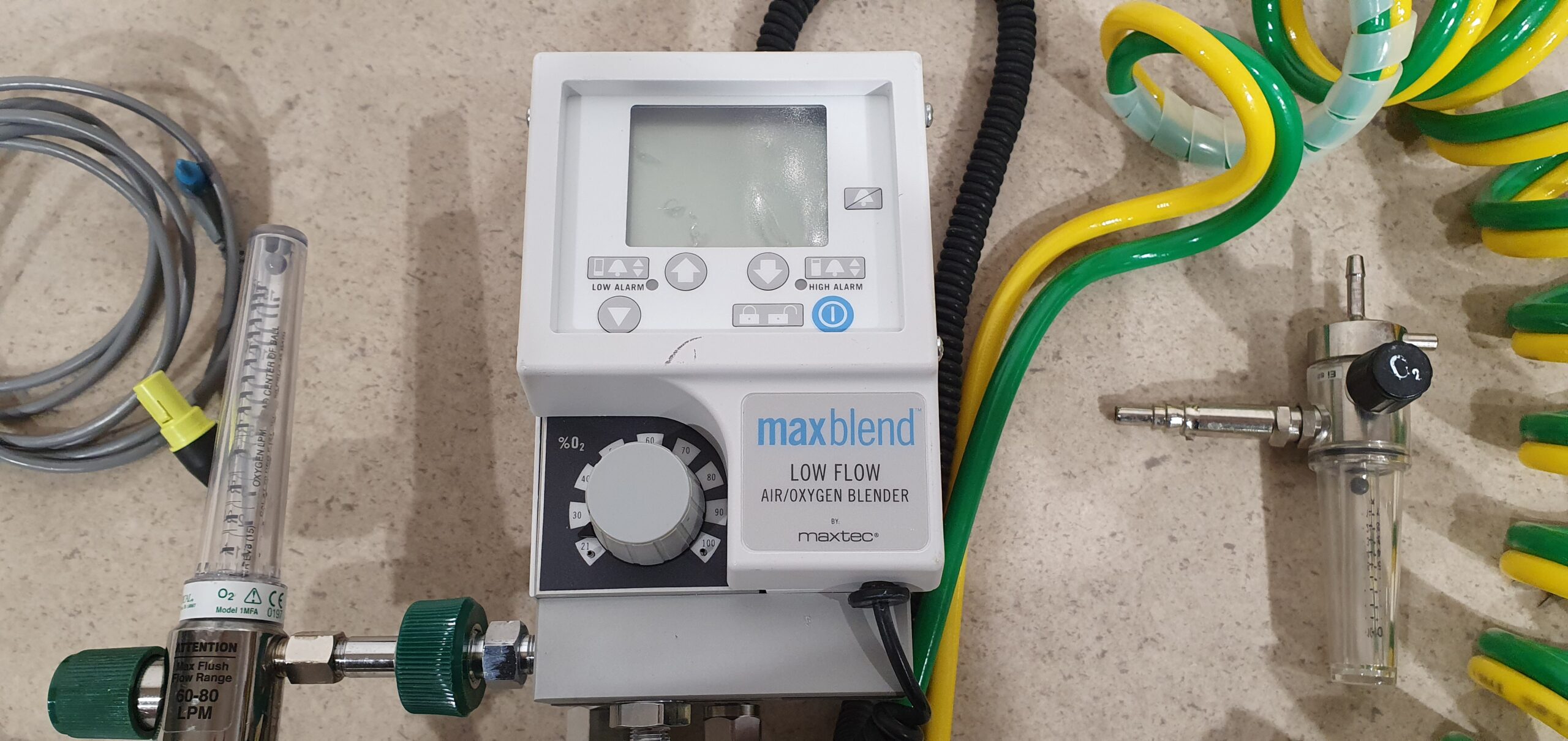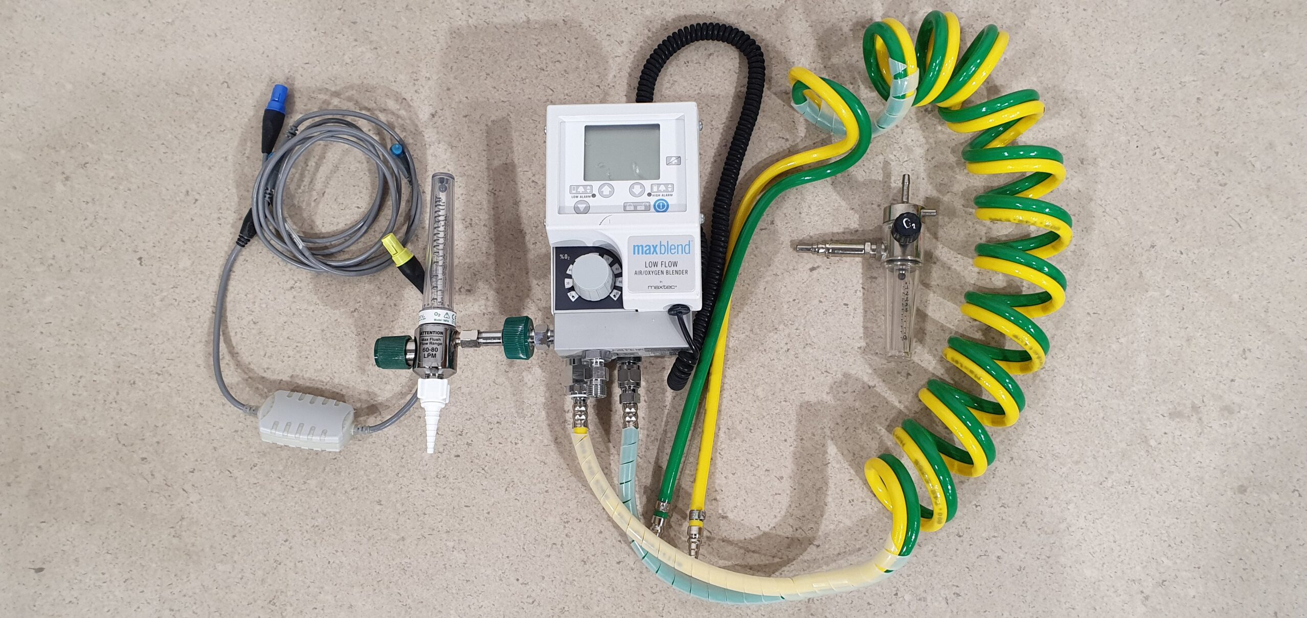 * MaxBlend Low Flow BBF01500 õhu- ja hapniku segisti, mis on mõeldud täpseks FiO₂ seadistamiseks haiglates, intensiivravis, neonatoloogias ja hingamisravi protseduuridel.