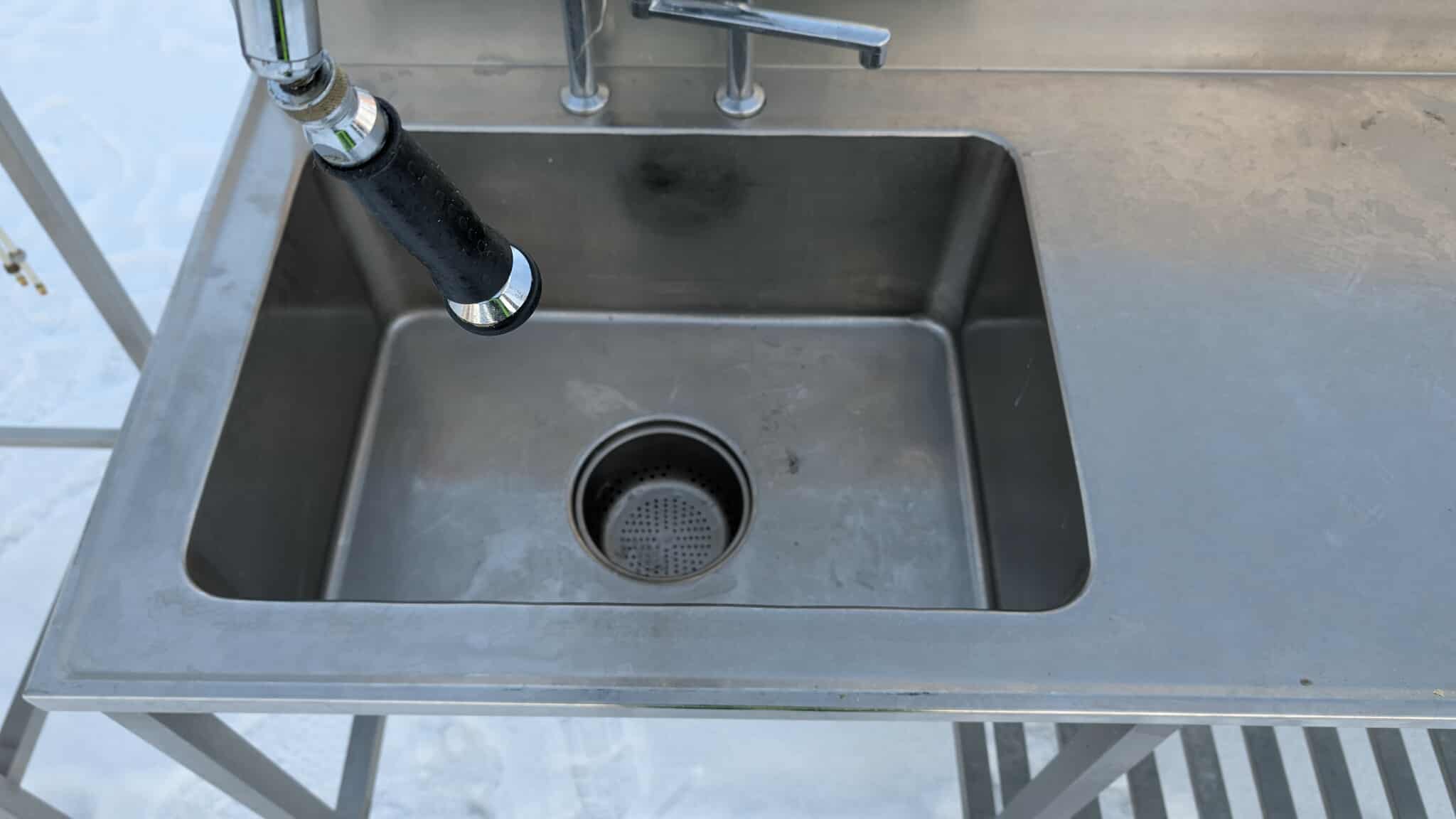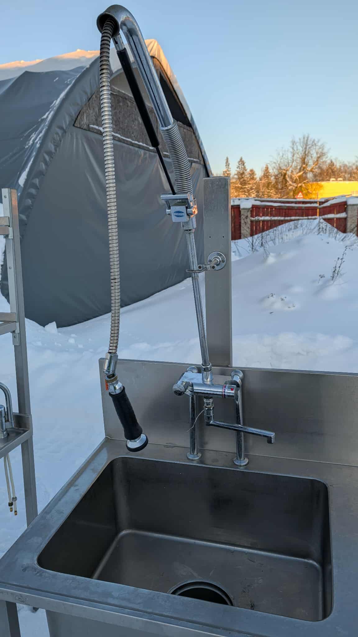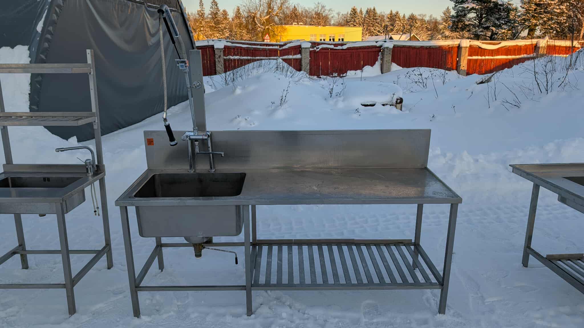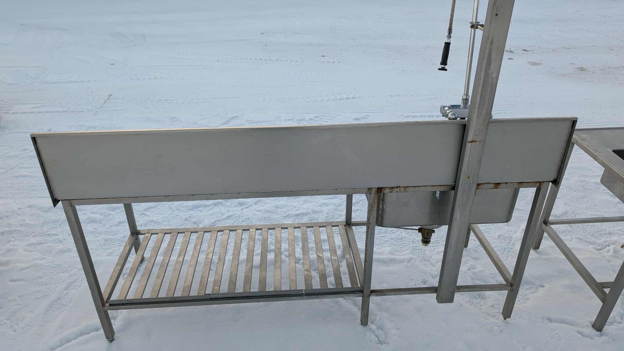 Roostevaba laud koos kraanikausiga ja riiuliga
