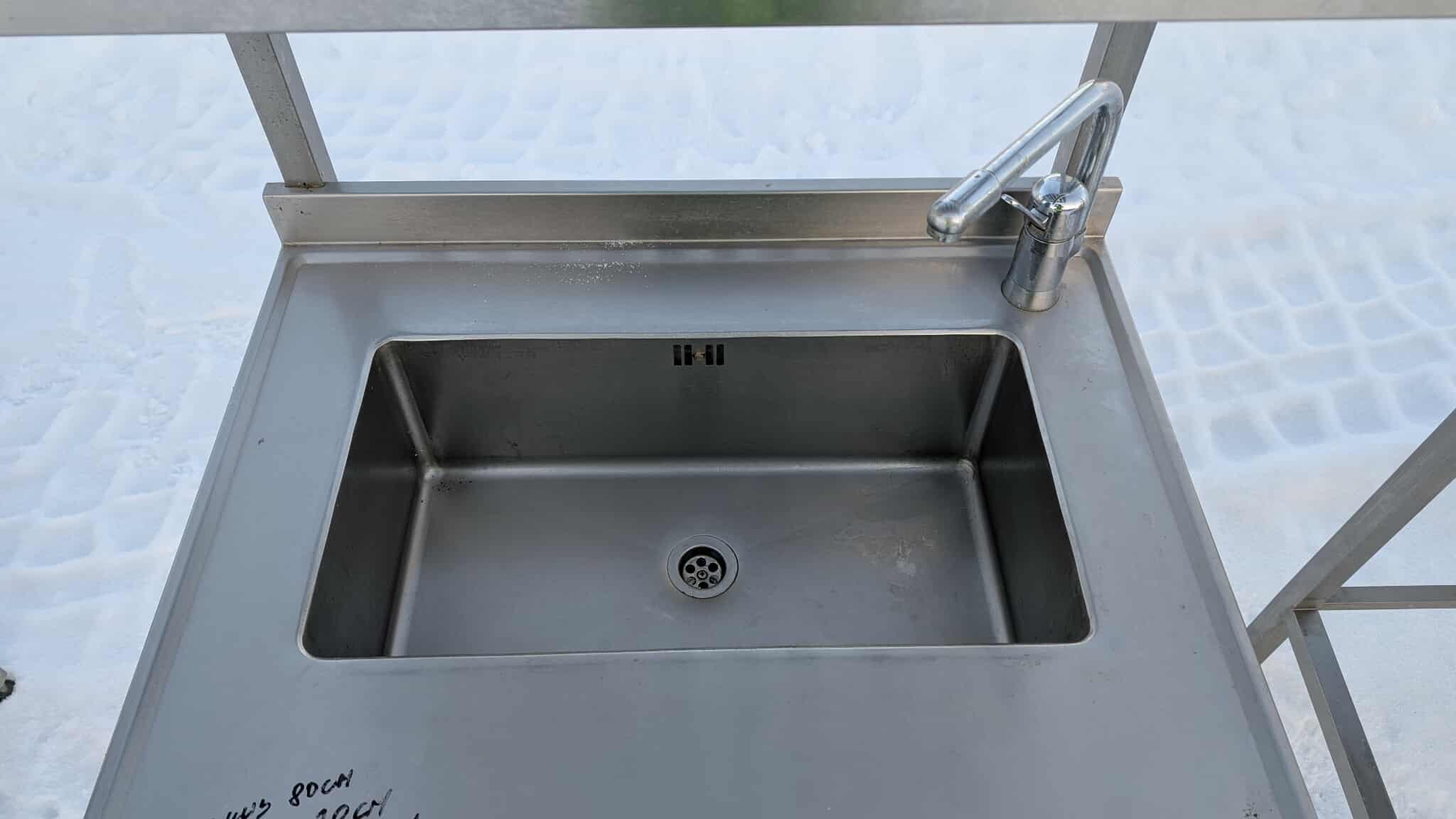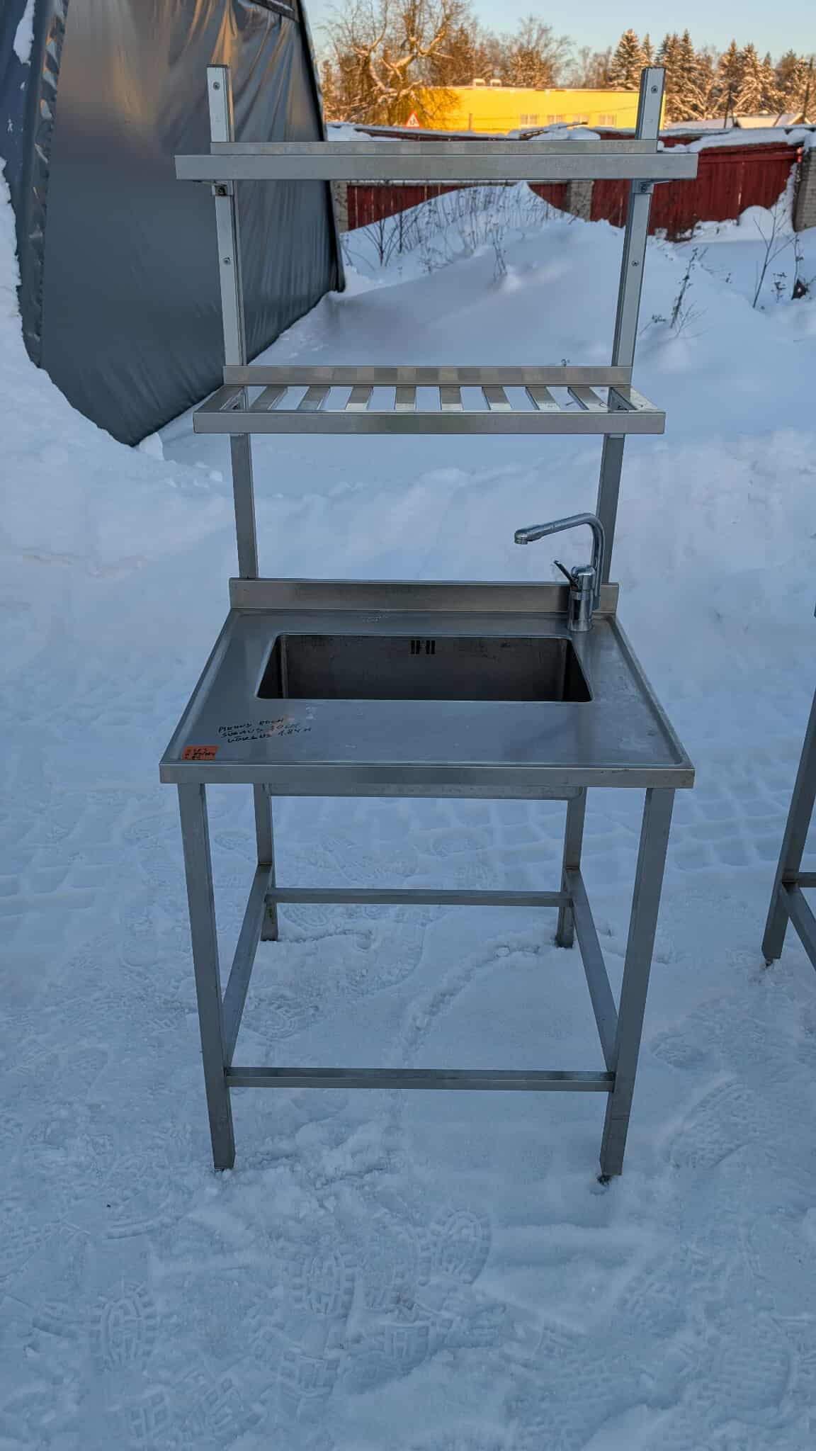 Roostevaba laud koos kraanikausiga ja riiuliga