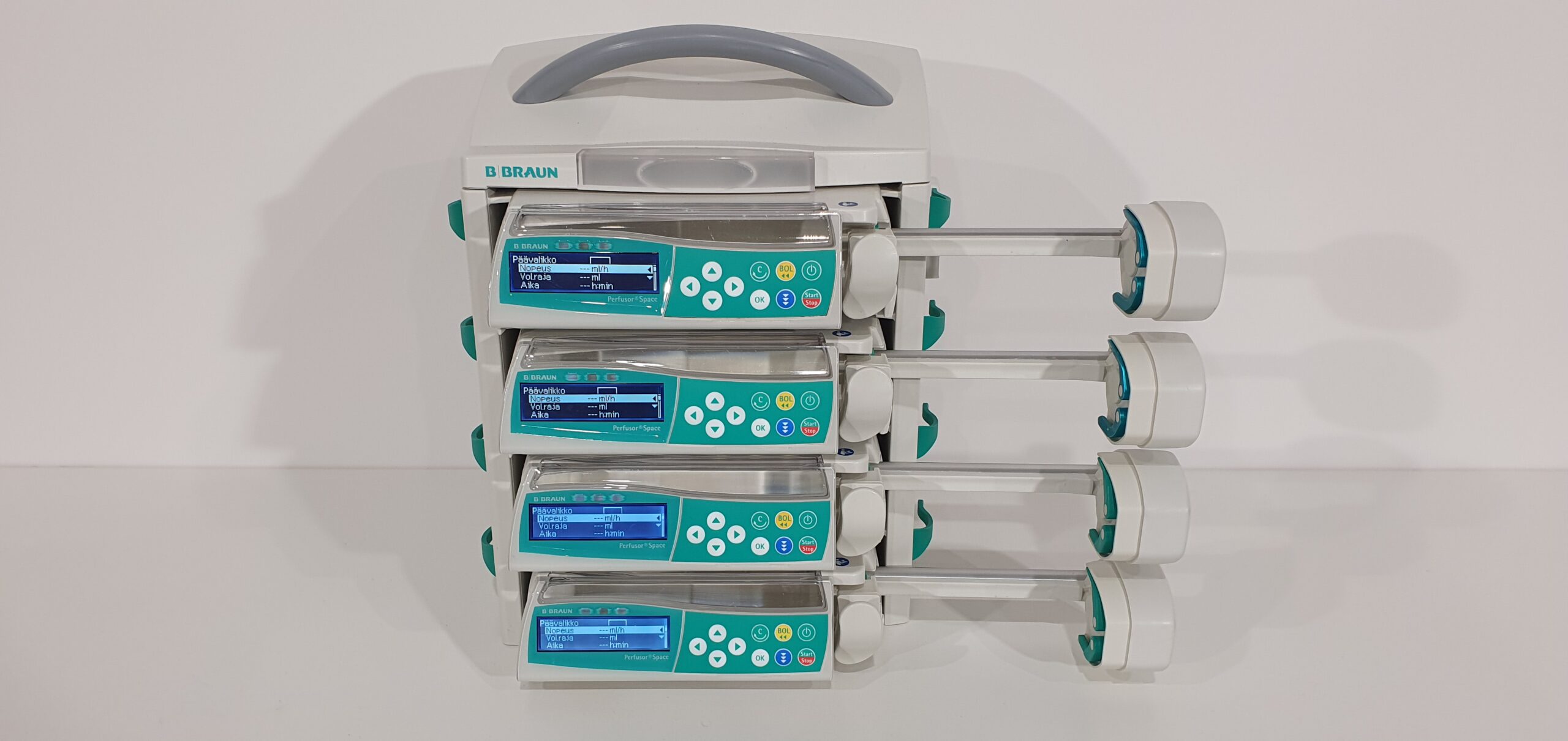 * B. Braun Perfusor Space süstlapump, mis on mõeldud ravimite ja infusioonilahuste täpseks manustamiseks haiglates, intensiivravis, operatsiooniplokkides ja transportmeditsiinis.
