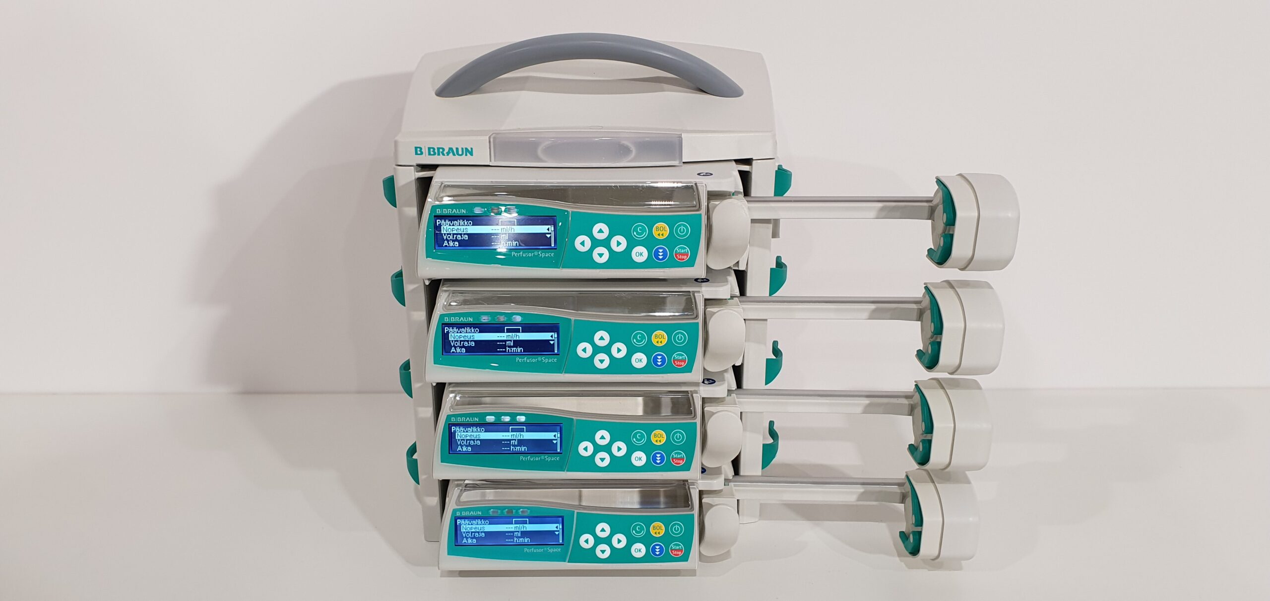 * B. Braun Perfusor Space süstlapump, mis on mõeldud ravimite ja infusioonilahuste täpseks manustamiseks haiglates, intensiivravis, operatsiooniplokkides ja transportmeditsiinis.
