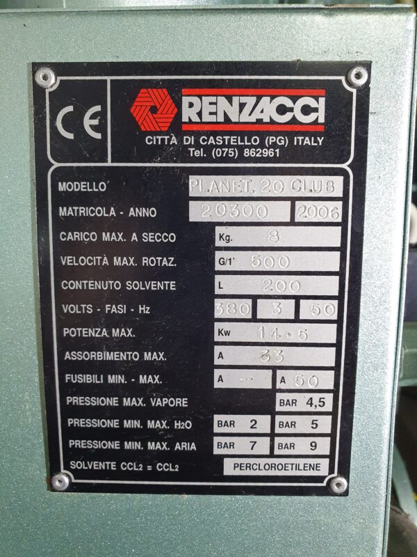 Keemilise puhastuse masin Renzacci Planet 20 club
