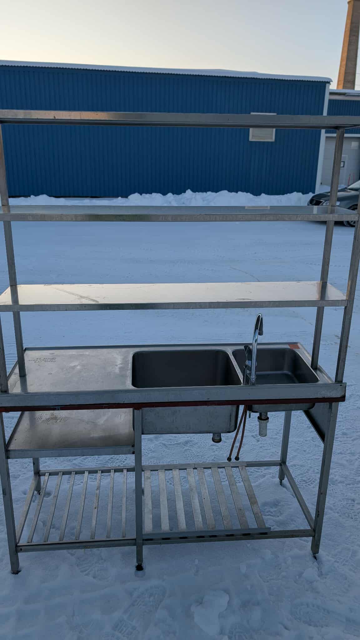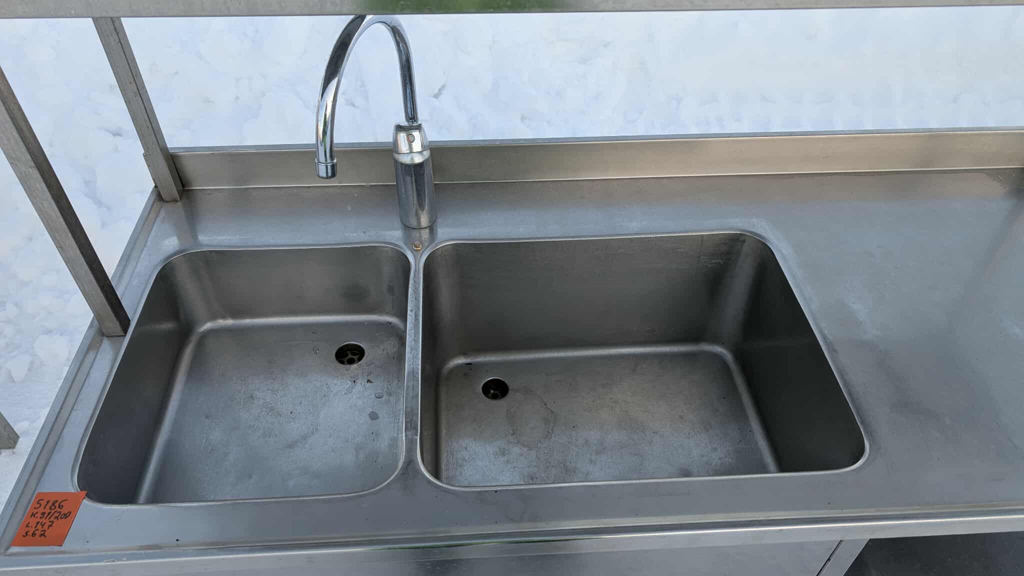 Roostevaba laud koos 2 kraanikausiga ja riiuliga