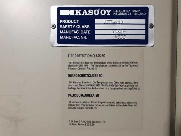 Seif, tulekindel kapp Kaso, tulekindlus klass 90