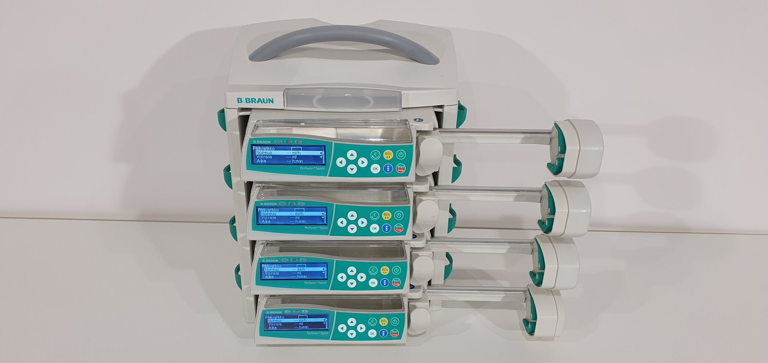 * B. Braun Perfusor Space süstlapump, mis on mõeldud ravimite ja infusioonilahuste täpseks manustamiseks haiglates, intensiivravis, operatsiooniplokkides ja transportmeditsiinis.